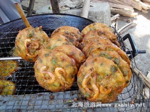 蝦仔餅,鮮脆可口,傳統(tǒng)小吃之一,一般是路邊小攤現(xiàn)炸現(xiàn)賣。