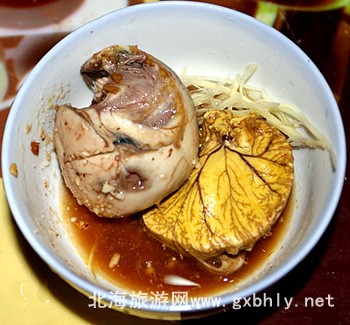 雞蛋仔/鴨蛋仔,就是拿孵化過(guò)的半成品煮熟,加上調(diào)料,價(jià)格要比一般的雞蛋鴨蛋貴很多。聽(tīng)起來(lái)看起來(lái)都有點(diǎn)殘忍,不過(guò)吃過(guò)的人都覺(jué)得蠻好吃的,在鄰國(guó)越南也是很受歡迎的一道吃食。