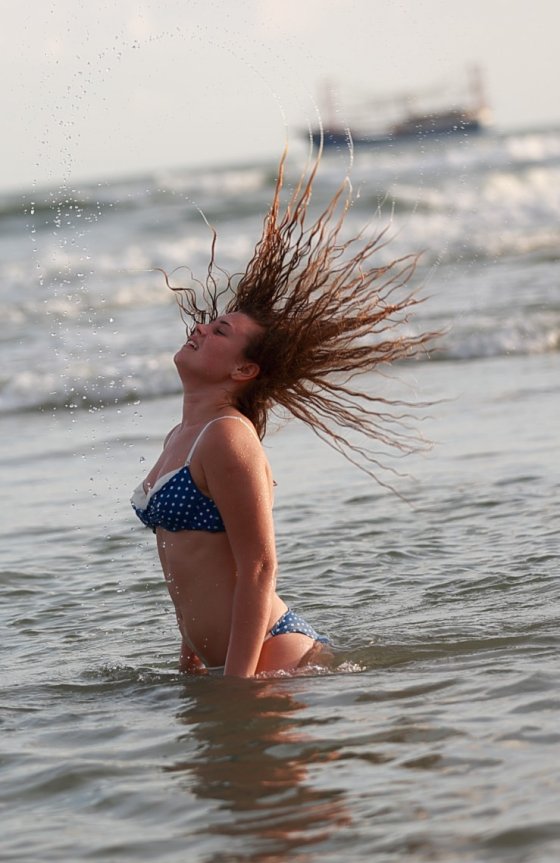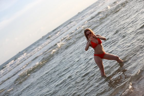 海邊拍照必備動(dòng)作之一