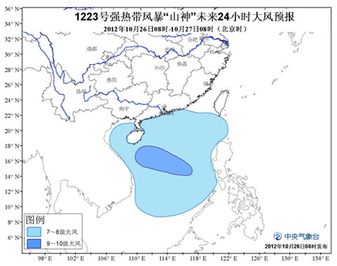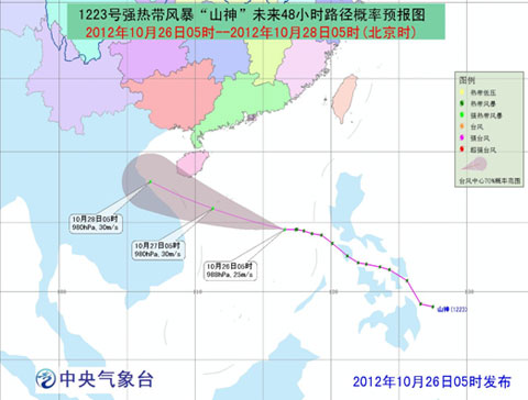 受“山神”和冷空氣的共同影響,26日08時(shí)至27日08時(shí),我國(guó)黃巖島附近海域、三沙市及其附近海域以及南海中部海域?qū)⒂?-9級(jí)大風(fēng),陣風(fēng)可達(dá)10-11級(jí),“山神”中心經(jīng)過的附近海域的風(fēng)力有10-11級(jí),陣風(fēng)可達(dá)12-13級(jí);巴士海峽、巴林塘海峽、南海北部和南部海域、瓊州海峽、北部灣以及廣東沿海、海南沿海也將有6-7級(jí)大風(fēng),部分海域或地區(qū)陣風(fēng)可達(dá)8-9級(jí);黃巖島及三沙市附近海域、海南島東部將有大到暴雨。