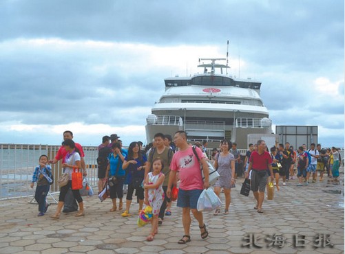 據(jù)新奧公司工作人員介紹,當日由于天氣原因,該公司開往潿洲島的只有噸位較大的“北游12”,該船可載客近千人,預計當日航班為3班,游客運載量約為3000人。