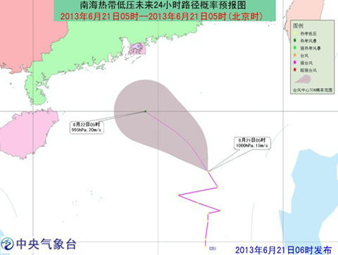 南海熱帶低壓未來24小時(shí)路徑概率預(yù)報(bào)圖