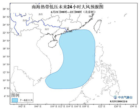 受熱帶低壓和西南季風(fēng)共同影響,21日08時(shí)至22日08時(shí),南海大部海域及我國黃巖島附近海域?qū)⒂?-8級大風(fēng),部分海域陣風(fēng)可達(dá)9-10級。