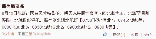 明天上午只開(kāi)通潿洲島至北海的航班,滯留的游客請(qǐng)盡早撤離!