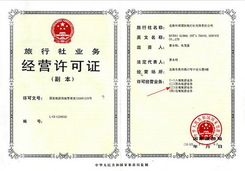 解讀:邊境旅游業(yè)務(wù)屬特殊旅游業(yè)務(wù),需另行申請(qǐng)。如“北海至越南下龍海上5日游邊境旅游業(yè)務(wù)”就需在出境旅游業(yè)務(wù)的基礎(chǔ)上另行申請(qǐng)。申請(qǐng)成功后,增存質(zhì)量保證金10萬元人民幣,然后“到國(guó)家旅游局換發(fā)《國(guó)際旅行社業(yè)務(wù)經(jīng)營(yíng)許可證》、到工商行政管理部門辦理經(jīng)營(yíng)范圍變更登記手續(xù)、到公安部門和相關(guān)口岸邊防檢查站辦理備安手續(xù)”。辦理完成后,經(jīng)營(yíng)范圍中便會(huì)增加“邊境旅游業(yè)務(wù)”項(xiàng)目。