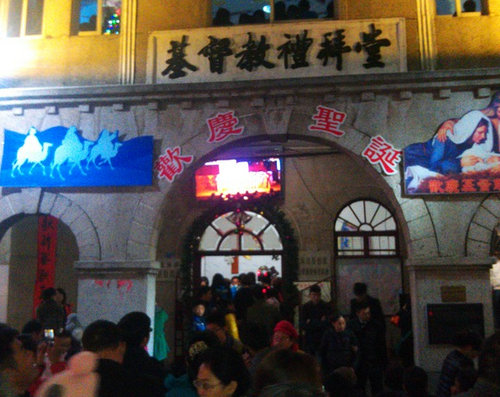 而今年12月24日平安夜,這里更是人山人海,幾個外國朋友歡樂的為大家唱詩。