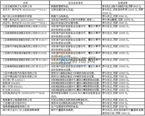 來(lái)自海南日?qǐng)?bào)的消息,為確保旅游市場(chǎng)秩序,海南省今年加大對(duì)旅游市場(chǎng)的綜合整治力度,采取重拳打擊、綜合整治等有力措施,查處了一批涉旅違法違規(guī)企業(yè)和個(gè)人。海南省旅游市場(chǎng)綜合整治工作領(lǐng)導(dǎo)小組辦公室繼6月29日、7月30日、9月26日集中公布查處涉旅案件之后,今天又集中公布第四批查處并執(zhí)行完畢的擾亂我省旅游市場(chǎng)的違法違規(guī)企業(yè)和個(gè)人。