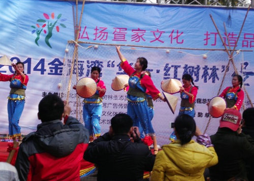 據(jù)報道,為弘揚(yáng)疍家文化打造品質(zhì)景區(qū),元旦當(dāng)天,北海市在金海灣紅樹林生態(tài)旅游區(qū)舉辦“2014金海灣‘華一·紅樹林’疍家民俗文化節(jié)”,富有本地民俗特色的疍家婚禮、疍家民謠、咸水歌、英姿颯爽的地角女民兵出現(xiàn)在市民和游客面前,深受大家的追捧。