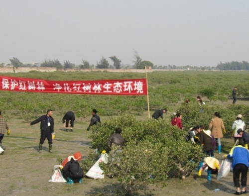 北海相關(guān)部門積極開展紅樹林救護行動,1月22日下午3點左右,在北海市銀灘東區(qū)(馮家江吊橋旁)展開了一場大型的清理紅樹林污物活動。參加人員有北海市林業(yè)局、銀海區(qū)林業(yè)局、北海市防護林場和廣西紅樹林研究中心等單位職工,以及北海紅樹林關(guān)愛與發(fā)展研究會的會員和志愿者們,F(xiàn)場還有北海日報的記者做調(diào)查采訪。