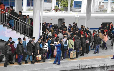 為緩解購(gòu)票難,從2月16日起,桂林到北海動(dòng)車(chē)D8253/4次由原來(lái)單列8節(jié)改雙列重聯(lián)16節(jié)開(kāi)行,旅客由原來(lái)的每趟600多人增加到1000多人,目前每趟往返動(dòng)車(chē)均滿(mǎn)員,春運(yùn)結(jié)束后北?土饕廊换鸨。為方便旅客從北海出行,鐵路部門(mén)正計(jì)劃于上半年增加一趟上午從北海發(fā)出的動(dòng)車(chē)。(摘自北海日?qǐng)?bào)25日訊)