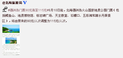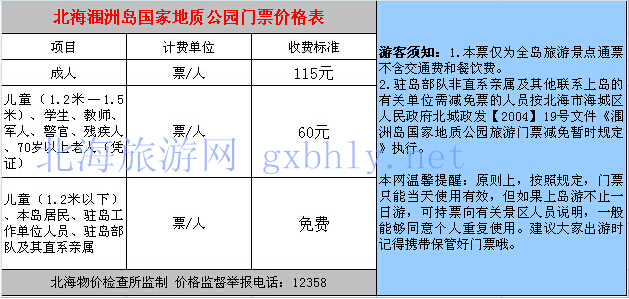 (北海旅行社訊)來(lái)自北海旅游局官網(wǎng)12日的消息,經(jīng)自治區(qū)物價(jià)局批準(zhǔn),從6月10日起,北海潿洲島火山國(guó)家地質(zhì)公園門(mén)票價(jià)格(包括鱷魚(yú)山、地質(zhì)博物館、標(biāo)志碑廣場(chǎng)、天主教堂、石螺口、五彩灘和滴水丹屏景區(qū)),由原來(lái)的90元/人次調(diào)整為115元/人次。