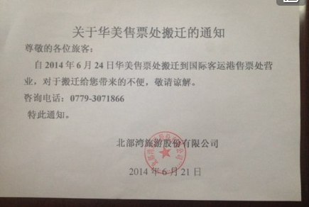原華美廣場潿洲船票售票處撤銷