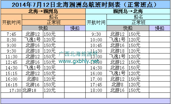 (北海旅行社訊)最近越來越多游客朋友計(jì)劃來北海游玩,詢問最多的便是潿洲的航班,讓我們網(wǎng)站的客服帥哥美女應(yīng)接不暇,為了讓大家都更加便捷直觀的查看,至今天起,本網(wǎng)將每天提前發(fā)布當(dāng)天潿洲島的航班信息。 以下是未來兩天(12、13日)的相關(guān)時(shí)刻表: