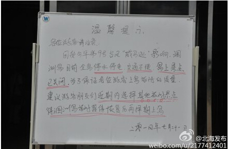 據了解目前尚未恢復去潿洲島正常客運營運,客運碼頭也貼出溫馨提示游客朋友:受臺風影響,目前潿洲島停水停電,交通不便,島上景點已關閉。建議游客朋友們近期選擇其他景點,待潿洲島做好災后重建,恢復接待能力后再擇期上島。