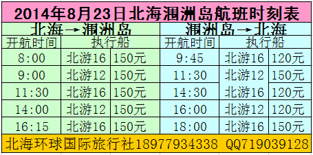 8月23日北海潿洲島航班時刻: