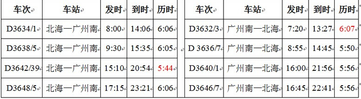 北海廣州南動(dòng)車時(shí)刻表出爐!