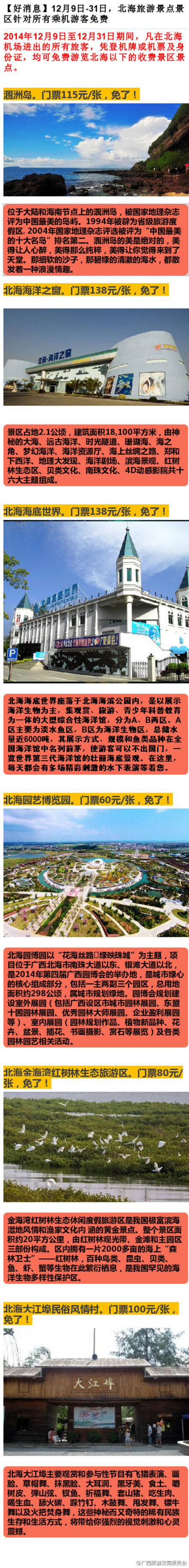 機(jī)惠難得 北海各大景點(diǎn)免費(fèi)游