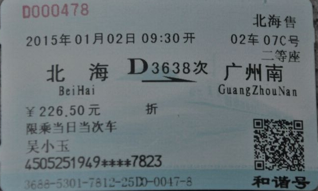 北海廣州南動車車票開售