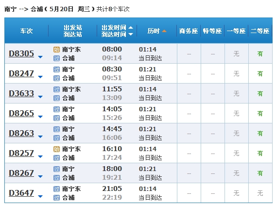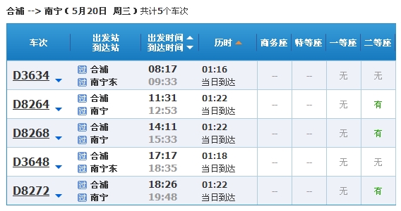 北海到南寧動(dòng)車時(shí)刻表