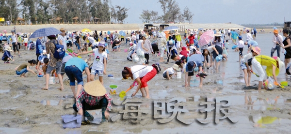 據(jù)了解,千人挖螺大賽是2015年中國北海第三屆疍家趕海節(jié)中的一項活動,市民和游客可以自由組2至5人的隊伍參賽,在指定趕海區(qū)域內(nèi),在規(guī)定時間內(nèi)收獲最多者獲勝。