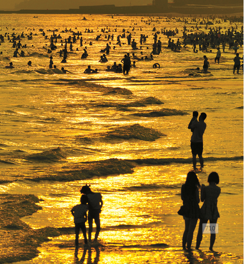7月8日傍晚,記者來到北海銀灘看到,如織的人流在不斷走向銀灘浴場(chǎng)戲水納涼。不一會(huì)金色夕陽播撒在銀灘浴場(chǎng)淺灘上,人們紛紛拿出手機(jī)、相機(jī)拍攝記錄這精彩一刻。