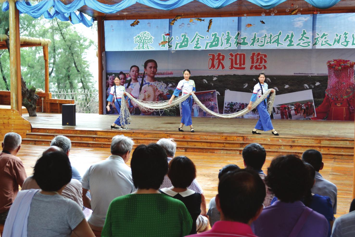 為了讓游客感受到北海本地的疍家文化,在金海灣紅樹(shù)林景區(qū)的表演區(qū),每天都有疍家風(fēng)情的節(jié)目上演,主持人解說(shuō)及演員的精彩表演吸引了眾多游客。