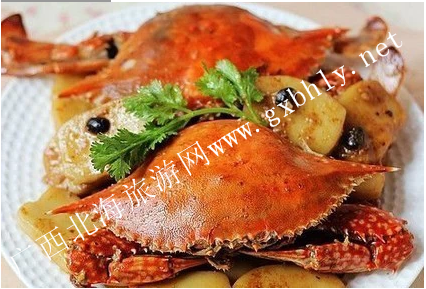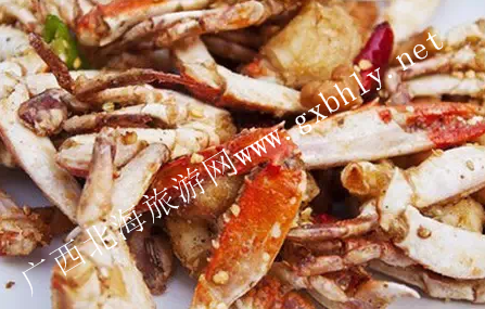 ④把辣椒炒一下,再將蟹及蒜餌入鍋,放入槐鹽拌勻即可。