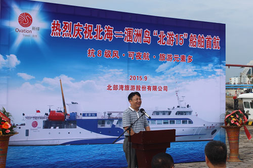 北海旅游發(fā)展委員會、北海市公安局、北海海事局、北海市港務管理局等相關單位領導及旅游企業(yè)代表參加首航儀式,并參加了“北游15”大型觀光客船的首航體驗之旅。