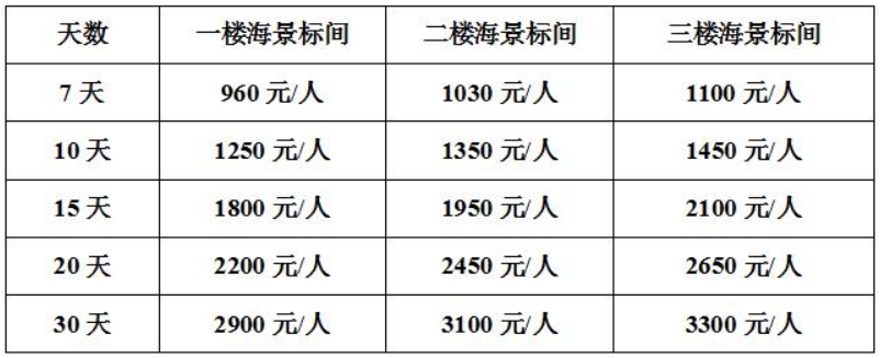 【2021年冬季“候鳥計劃”健康親情游價格表(日供三餐)】