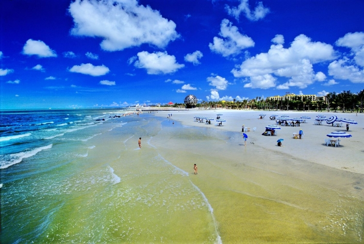 有人說“不到十里銀灘,不算是到了北海!便y灘號稱“天下第一灘”,沙質(zhì)細軟、海水湛藍、波浪溫軟,是一個天然的海水浴場。除了游泳、日光浴、沙灘卡丁車、海上摩托艇之外,還可欣賞北海的大型沙雕展。