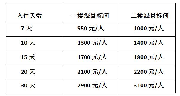 7.由于酒店過冬養(yǎng)老項(xiàng)目價(jià)格比較實(shí)惠。春節(jié)期間北海酒店房間比較高,本酒店春節(jié)正常房間價(jià)格為700元/間/天。如春節(jié)參加酒店過冬項(xiàng)目,需要加收房費(fèi)600元/人,一間房加收1200元。