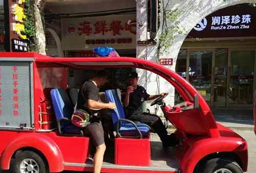 為了讓中暑游客得到及時(shí)的救治,在該名游客的指引下,老城公司安保隊(duì)員駕駛景區(qū)微型消防巡邏車來到中暑游客所在的地方,將中暑游客扶上車后,將其送至景區(qū)附近的醫(yī)院就診。