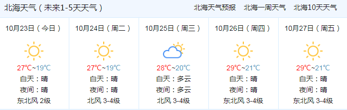 北海未來5天天氣預(yù)報(bào)