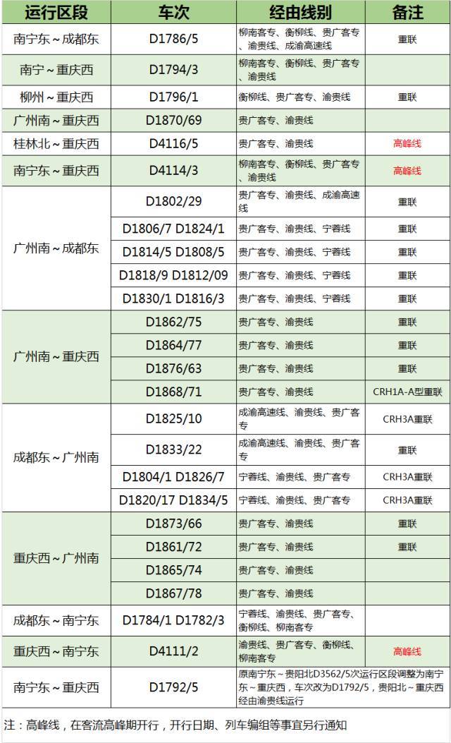 南寧東~西安北G1546/7 G1548/5次運行區(qū)段調(diào)整為南寧東~南京南,車次改為G1546/5次。