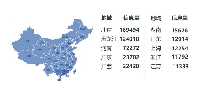從地域分析看,除廣西本地的網(wǎng)友外,北京和黑龍江的網(wǎng)友對廣西旅游的相關(guān)信息也同樣關(guān)注。