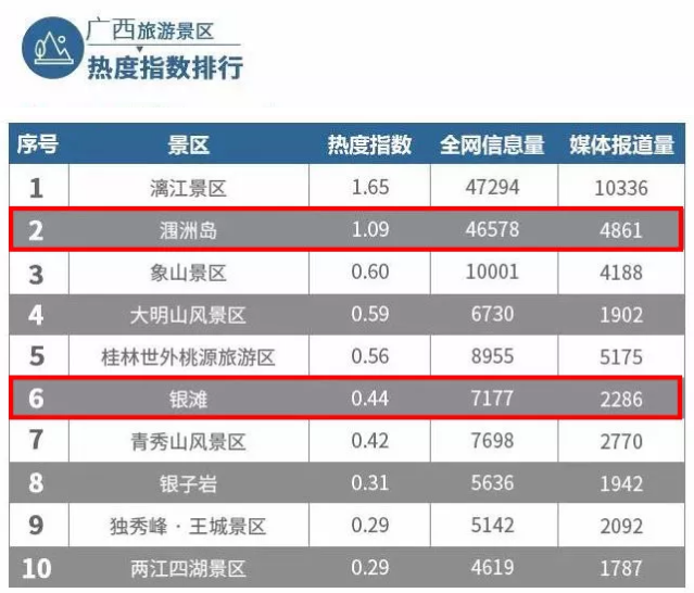 廣西旅游景區(qū)熱度指數(shù)排行
