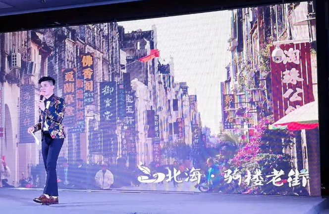 ▲現(xiàn)場通過大屏幕播放北海的人文風光