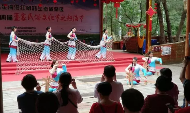 各大景區(qū)普遍舉辦了豐富多彩的主題活動,金海灣紅樹林景區(qū)開展“2018年第四屆疍家民俗文化節(jié)之趕海節(jié)”,《疍家咸水歌迎賓》、《疍家婚禮表演》等表演節(jié)目深受游客歡迎,即興快閃表演、尋寶活動、互動游戲等活動環(huán)節(jié)氛圍活躍,獨具特色的迎賓方式、別有趣味的婚禮互動吸引了不少游客觀賞、參與體驗。