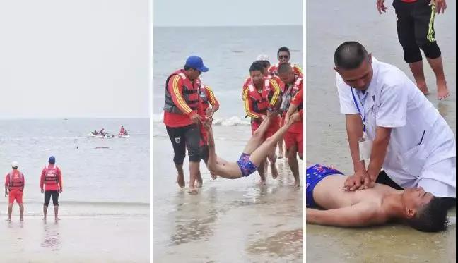當天啟動儀式上,在“銀灘·嘉年華”活動場地進行了包括有海上巡查、發(fā)現(xiàn)溺水者、啟動應(yīng)急救援、海上搜救、水上搶救溺水者、緊急心肺復(fù)蘇、人工呼吸、聯(lián)系120 救護中心進行施救等內(nèi)容的海上搜救應(yīng)急演練。當天中午,還進行了旅游飯店消防及食品安全演練,演練模擬客人在酒店棋牌室普洱房間吸煙,導(dǎo)致引起火災(zāi)觸發(fā)探測器報警,消防控制中心接報后根據(jù)情況開展現(xiàn)場救援。演練內(nèi)容包括火情報警、初期火災(zāi)撲救、應(yīng)急疏散、消防隊滅火救援、滅火實操。