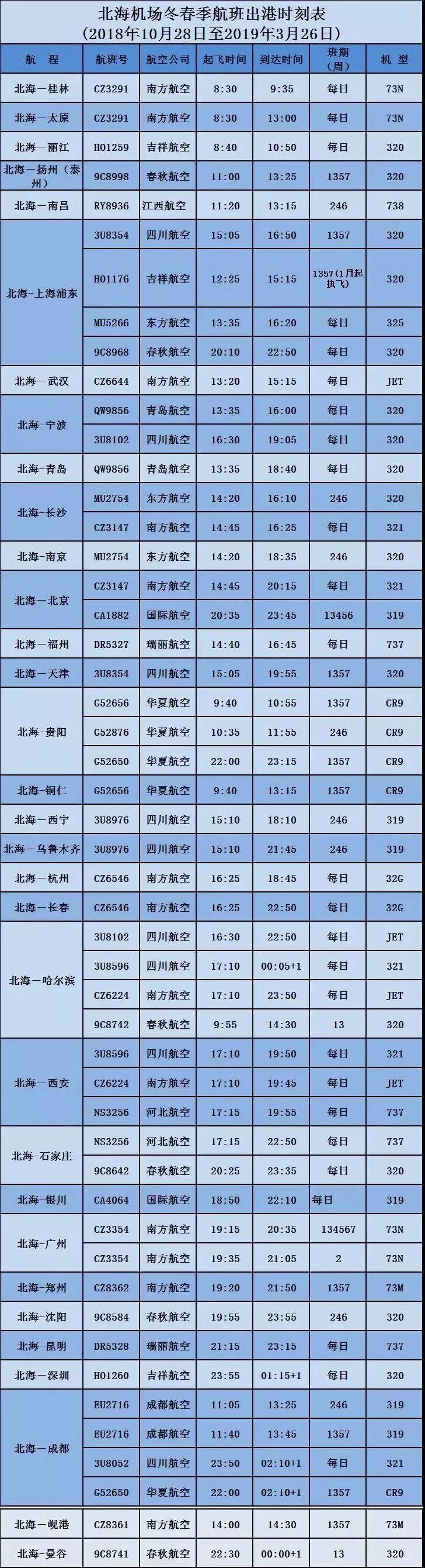 北海-上海浦東MU5266調整為13:35起飛;北海-成都 EU2716調整為11:05起飛。