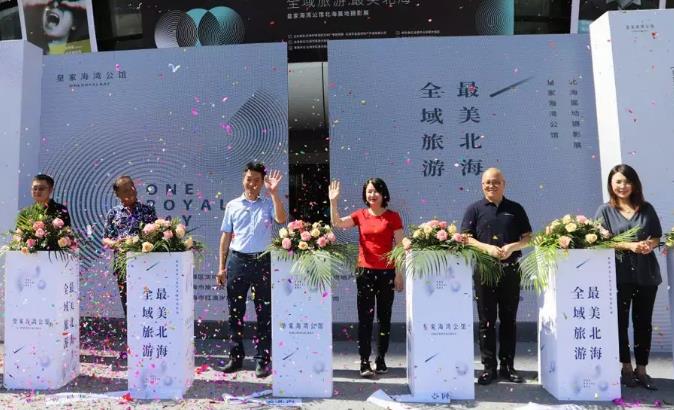 當(dāng)天早上9時(shí)許,開幕儀式正式開始。開幕式上,由北海市旅游文體局副局長(zhǎng)韓云飛,銀海區(qū)委常委、宣傳部部長(zhǎng)、副區(qū)長(zhǎng)程霞,金昌啟亞、紅漁米旅游文化等領(lǐng)導(dǎo)共同剪彩,宣布攝影展開始,現(xiàn)場(chǎng)禮炮打響,[全域旅游·最美北海]皇家海灣公館首屆屬地?cái)z影展正式開幕。