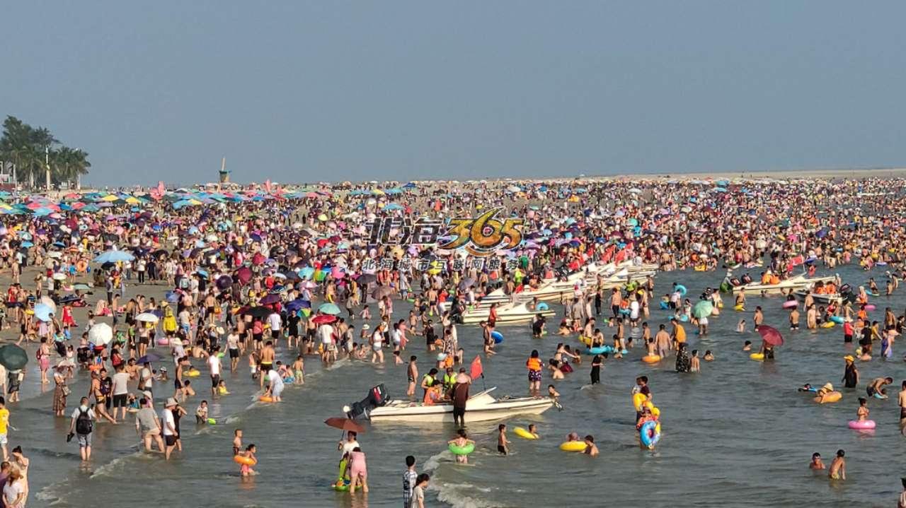 北海銀灘景區(qū),游泳注意安全,小孩容易走失