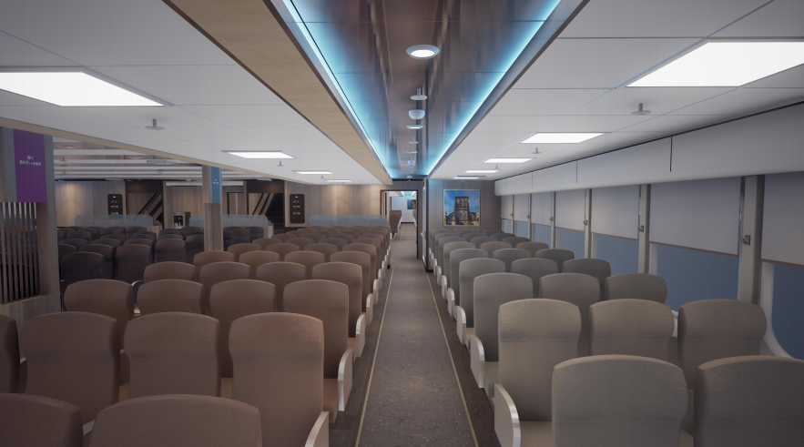 內(nèi)部空間布局合理,視野開闊,具有優(yōu)良的快速性、耐波性、安全性和舒適性的特點。