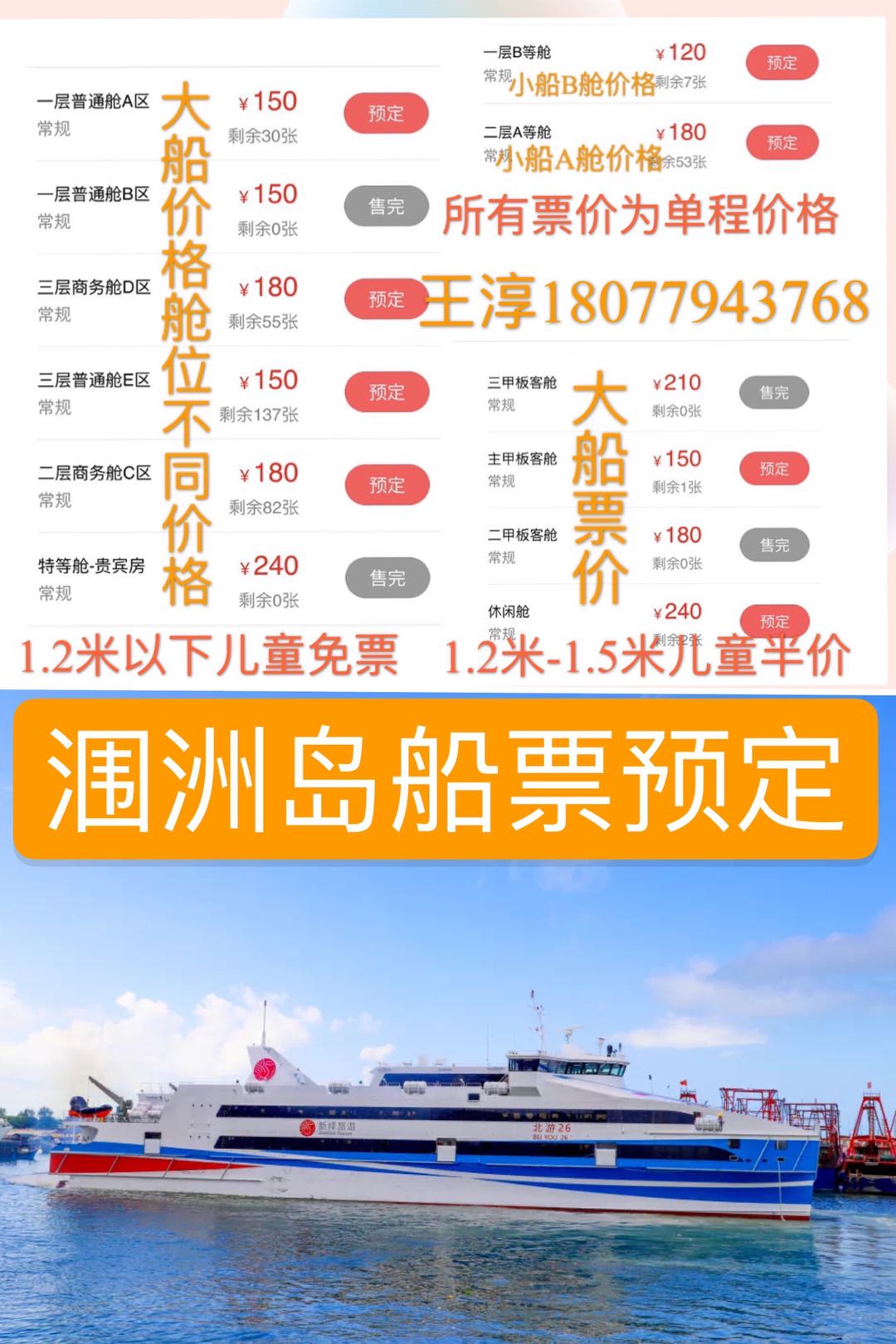 注意事項2:超出兒童票購買范圍的兒童,已購買兒童票,需補足全價票差價。在途中或到達港,查出兒童未按規(guī)定購買船票的,按規(guī)定須全額補票。