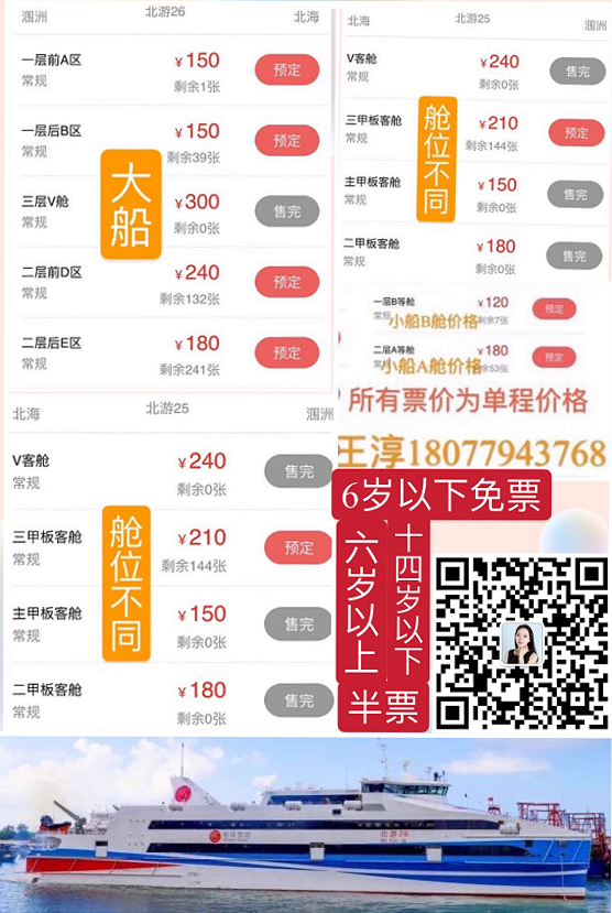 國慶期間目前1號到5號潿洲島船票已售馨