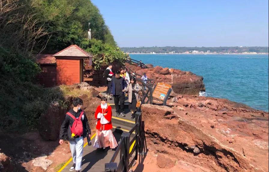 2020年12月29日,潿洲島南灣鱷魚山景區(qū)正式晉升國家5A級旅游景區(qū),旅游熱度和知名度持續(xù)攀升,受到全國各地游客的廣泛關(guān)注,潿洲島一躍成為旅游熱點,游客借著元旦假期,開啟一段火山海島探秘之旅。作為潿洲島旅游的核心景點,南灣鱷魚山景區(qū)典型的火山地質(zhì)遺跡、奇特的海蝕微地貌景觀、豐富的生態(tài)旅游資源吸引不少游客前來打卡游玩,探火山、賞海景、揚帆出海,游客們在這里體驗海島的非凡魅力。在晴天的映襯下,大海一片蔚藍(lán),游客將南灣鱷魚山景區(qū)的壯麗海景盡收眼底,紛紛拿出手機(jī)拍照留念。