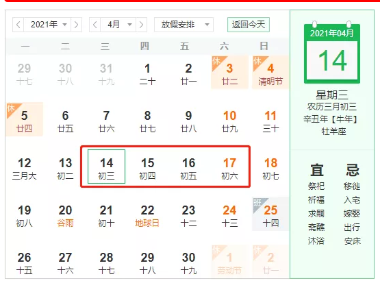 根據(jù)《廣西壯族自治區(qū)少數(shù)民族習(xí)慣節(jié)日放假辦法》(廣西壯族自治區(qū)人民政府令第98號(hào)),經(jīng)自治區(qū)人民政府同意,現(xiàn)將2021年“壯族三月三”放假有關(guān)事項(xiàng)通知如下:4月14日(農(nóng)歷三月初三,星期三)、4月15日(農(nóng)歷三月初四,星期四)放假,4月16日(星期五)調(diào)休,即4月16日(星期五)休息,4月18日(星期日)上班!皦炎迦氯奔倨谄陂g,各地各部門要按要求做好常態(tài)化疫情防控工作,妥善安排好值班和安全、保衛(wèi)等工作,遇有重大突發(fā)性事件,要按規(guī)定及時(shí)報(bào)告并妥善處置,確保人民群眾度過平安祥和的節(jié)日。