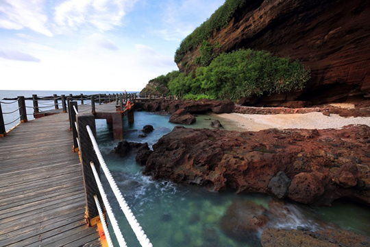 下午游覽:【石螺口海灘】這里被稱為潿洲島最美海灘,游覽【滴水丹屏】景區(qū)絕壁上部綠樹成蔭,壁上隙常有水溢出,一點點往下滴,如珠簾垂掛。參觀【天主教堂】該教堂由法國巴黎外方傳教會傳教士修建,落成于1880年。該教堂為哥特式建筑,樓高21米,總建筑面積774平方米。是清末“雷廉”地區(qū)一座最為宏偉的教堂(不包含景區(qū)電瓶車20元/人)(游覽時間約30分鐘)。游覽【五彩灘景區(qū)】景區(qū)位于潿洲島東面,退潮后巨大的火山巖石一層一層的,在陽光的照射下特別的壯觀,巖石上一洼一洼的海水,在藍天的映射下呈現(xiàn)出迷人的藍,這里是拍攝的絕佳位置(海邊礁石易滑倒,請注意安全。