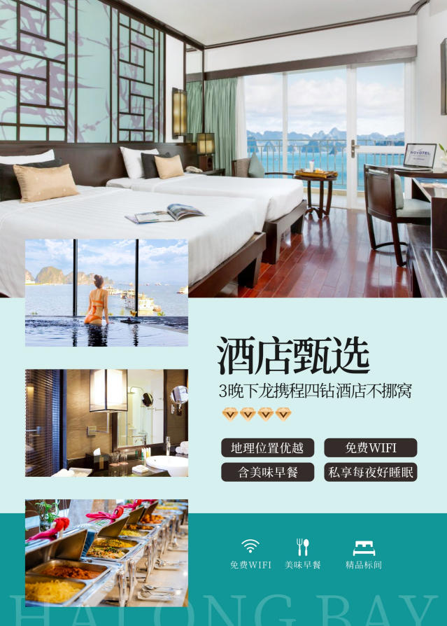 下龍(攜程四鉆):SC拉克斯瑞霍特爾,寶明輝煌酒店,宋祿豪華酒店,新下龍酒店,The One 或同級別酒店。