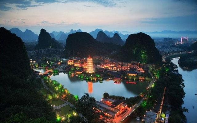 早上桂林接站,游覽【伏波山】(約35分鐘),該山臨江而立,山腳深入,山麓是著名的還珠洞,洞內(nèi)有著名的試劍石、題刻和佛像等山上有奇特的風(fēng)洞和唐宋摹崖石刻多處,登頂可覽,遠眺漓江風(fēng)景迷人。接著參觀玉石水晶博物館(約50分鐘),隨后游覽桂林城微【象鼻山】(游覽約40分鐘),因整座山形似一頭駐足江邊飲水的大象,栩栩如生,引人入勝,故得名象鼻山。這里歷來為旅游勝地,旖旎的風(fēng)光,神奇的形象,動人的傳說。中餐后游覽桂林市最大的綜合性公園【七星公園】,(約90分)(花橋、棲霞寺、華夏之光浮雕廣場、駱駝山)克林頓總統(tǒng)演講處,在栩栩如生的駱駝峰下感嘆大自然的鬼斧神工。住桂林